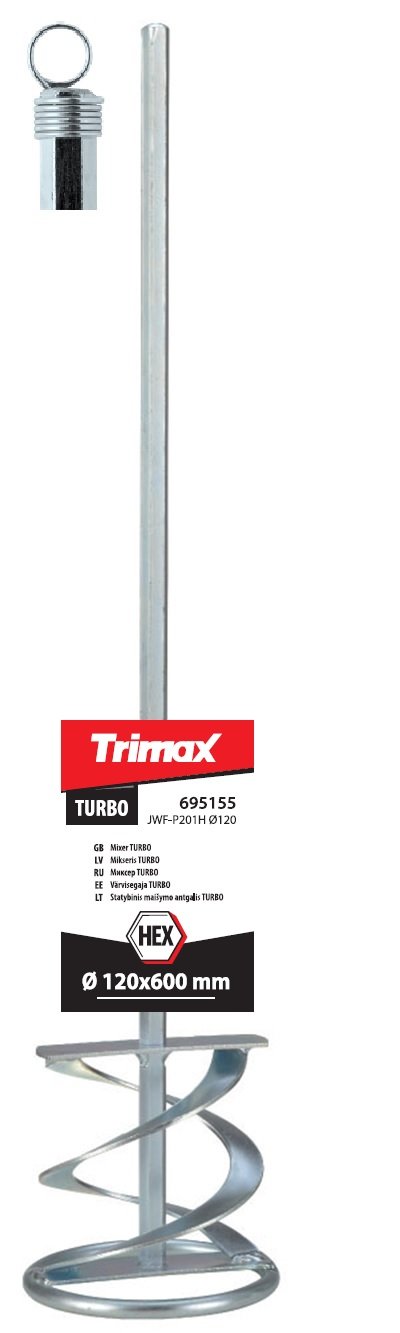 Statybinis maišymo antgalis TURBO 120×600 mm HEX